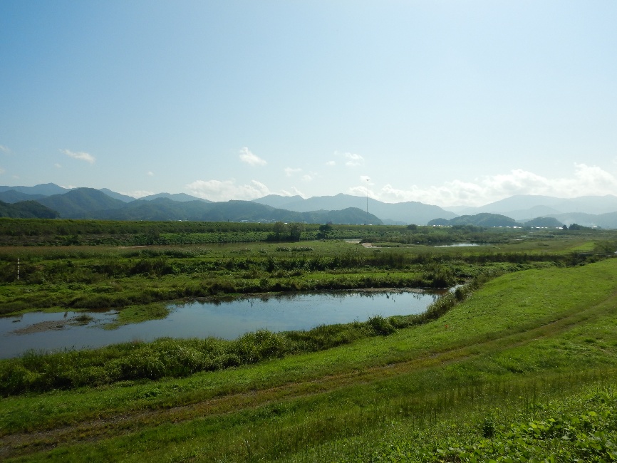 田畑が広がっていた堤外地にさまざまな生きものが生息・生育・繁殖できるように、一年中水がたまった池のような環境を目指しています。