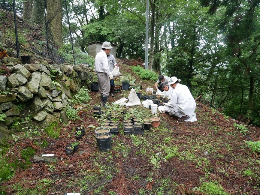 一万年続いてきたと言われる美しい妙見山のブナ林は、地球温暖化やシカの食害のため絶滅の危機に瀕しています。ブナ林を次の世代に残すため、実生苗の保護・育成や林内の整備などを行っています。