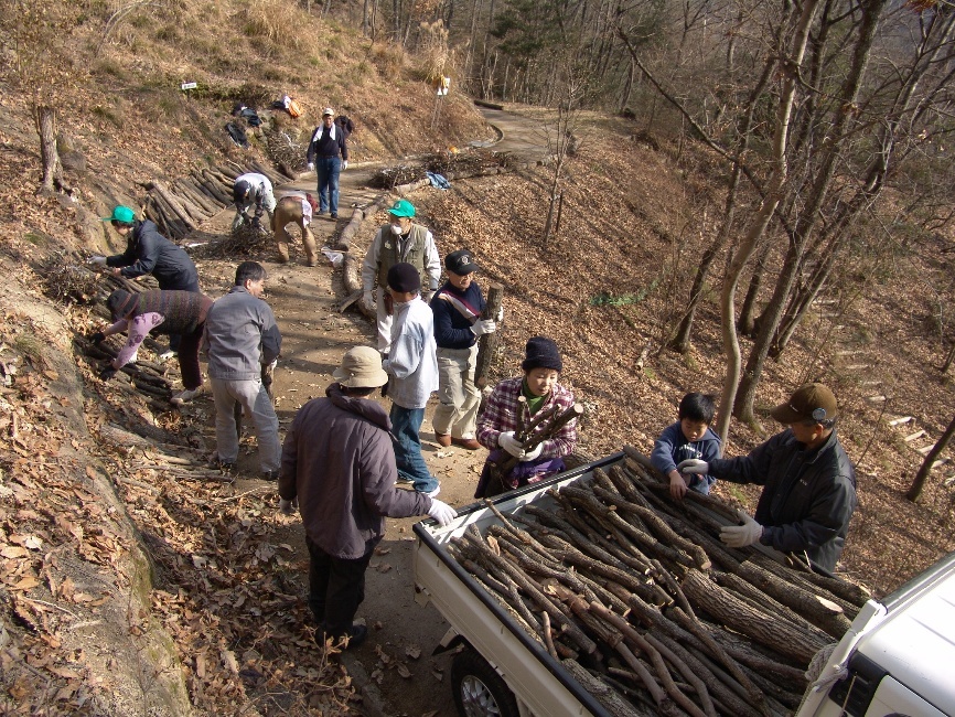 公園では、ボランティア団体と協力して、里山の保全や炭焼きの技術継承を行っています。