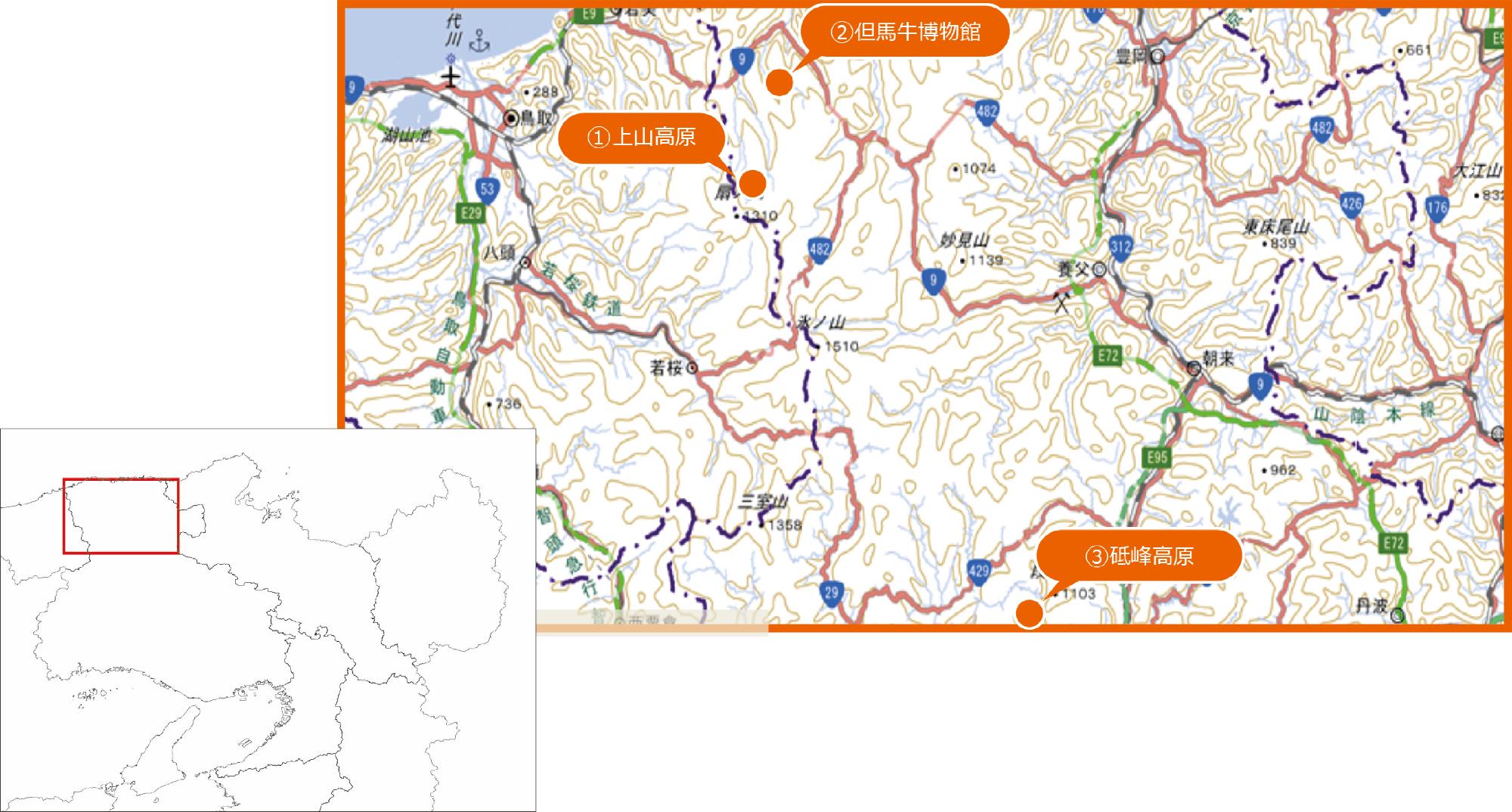 本コースでは、この特徴的な自然と、これらを維持するために行われている保全活動や、地域ブランドの但馬牛と人々の暮らしの密接な関わりを学ぶことができます。